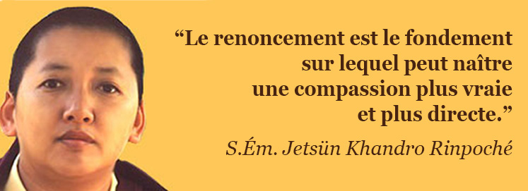 Le Renoncement dans la Tradition Bouddhiste Chers amis, chères amies, Au nom du Monastère Mindrolling en Inde, je voudrais rendre hommage à la merveilleuse vision et aux efforts de Swami Atmananda Ji et de tous les membres de l’Ajatananda Ashram. Dans le monde d’aujourd’hui, avec tous les malentendus et les