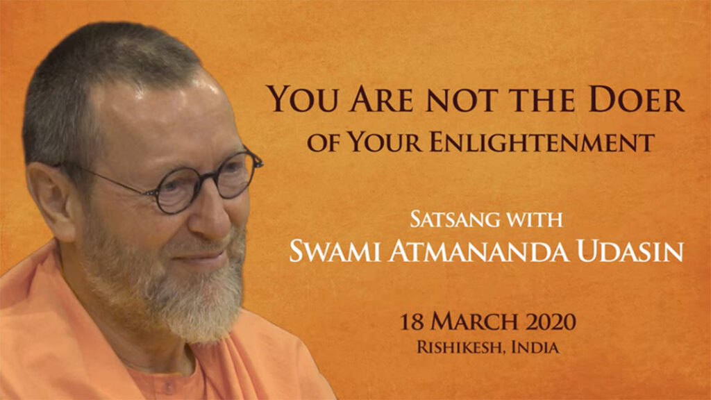 (2:23) Vous pouvez renoncer au monde, vous pouvez renoncer aux liens familiaux, vous pouvez renoncer à votre position sociale, à votre santé… mais si vous ne renoncez pas au ‘je’, vous n’avez renoncé à rien. Swami Atmananda Udasin est un enseignant de l’Advaita Vedanta (Non-dualité) et l’Āchārya de l’Ajatananda Ashtam à